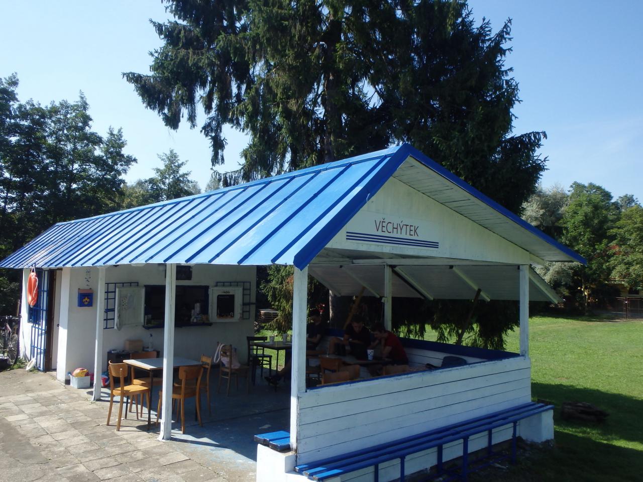 Část nízké zděné správní budovy byla pronajímána k celoročnímu provozu malé hospůdky. Letitým nájemníkem zde byla pí. H. Konvalinková, která v interiéru této hospůdky svépomocí realizovala některé drobné provozní úpravy.