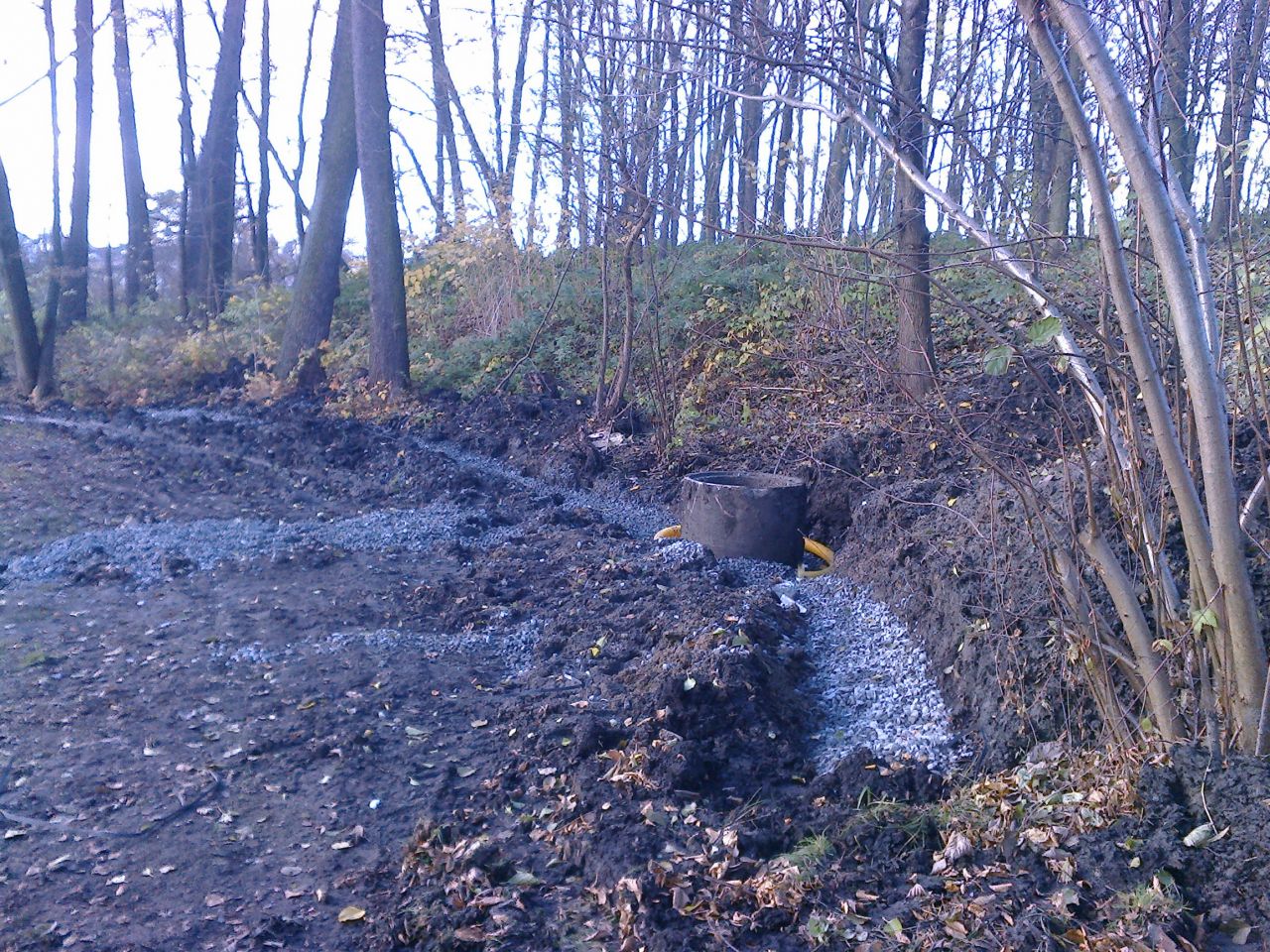 Ale vyhrabali jsme se z bodu 0, máme usazené skruže, vyspádované trubky a hlavně – voda z bažiny odtéká do rybníka!
