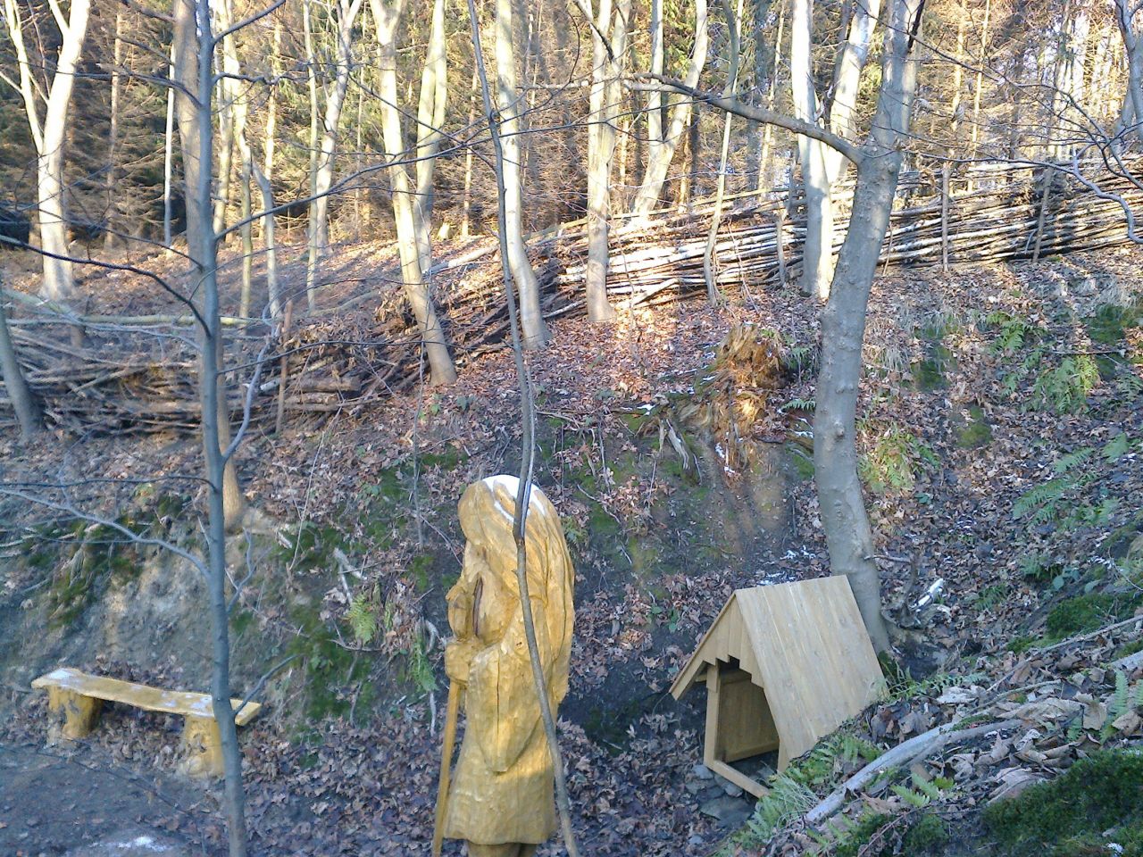 Sešlo se nás kolem dvaceti, což byl nevídaný počet a proto se s prací „pohlo“ hned na několika frontách – jedna parta stavěčů schodů a rozcestníků k Liduščiným studánkám, jedna parta stavěčů mostku ke Kouzelné studánce. Muž s pilou (Jirka) zůstal v Pekle spolu s dalšími, kteří trpělivě skládali hustý plot, zasekávali schody a připravovali místo pro lavičku.